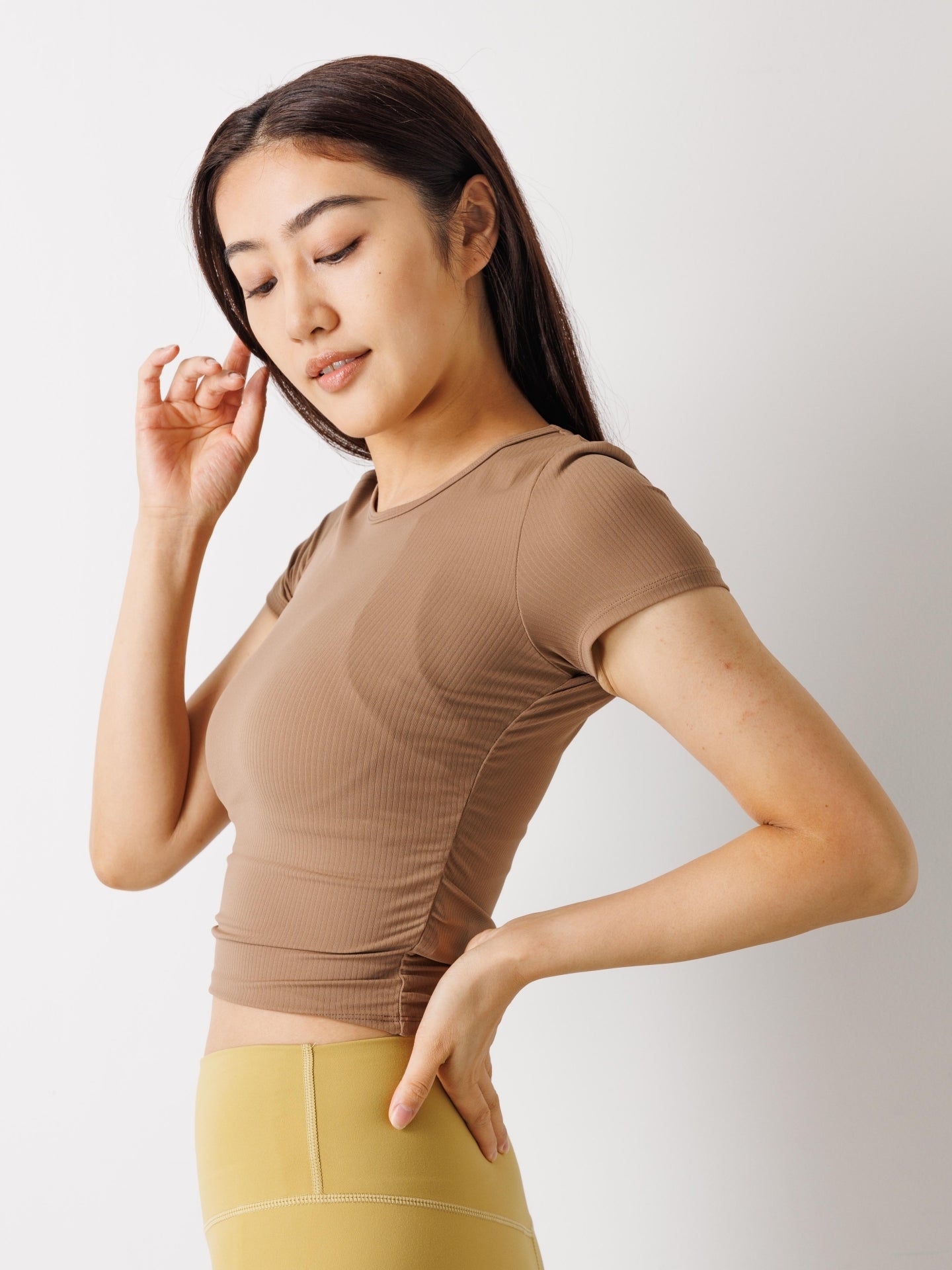 テイラー リブ クロップ トップス ブラウン